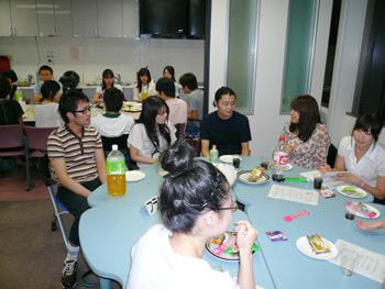 派遣前オリエンテーションに引き続き、本年度から新たな試みとして、既に大学間や部局間の学生交流協定で1学期間から1年間の海外留学を果たし帰国した学生有志に協力してもらい、1学期間以上の交換留学の内定し派遣する学生との交流会を吹田ICホール2階の留学生センターIRIS(留学生情報室)にて午後6時過~7時 半頃まで開催しました。主な目的は、大学間・部局間交換留学を実際に経験し帰国した学生から、渡航前にしておく留学準備や特定の国や大学の情報を聞き、こ れから留学を開始する学生が充実した留学生活を実現するための助けとするためです。具体的には、センター側で飲み物とスナックを提供し、はじめに帰国学生 が自己紹介を行い、留学先の地域や国や大学に分けて、帰国学生とこれから留学を開始する学生が情報交換を行いました。またこの企画は、本学からの海外交換 派遣留学者数が増大している現状にあって、様々な国や地域に留学した経験者同士の人的ネットワークを構築することも趣旨の一つとしています。参加者数は、 留学を経験した帰国学生10名、海外留学予定者20名の計30名であった。大変好評であったこともあり、今年度も引き続き開催する予定です。